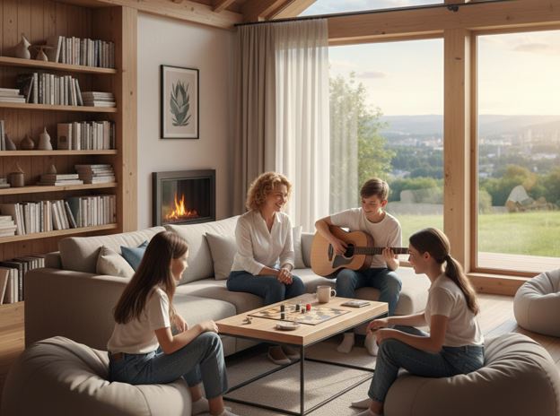 В Доме для детей создается уютная, домашняя атмосфера и спокойная учебная обстановка, способствующая максимальной концентрации и психологическому комфорту. Мы стремимся, чтобы каждый ребенок чувствовал себя здесь как дома.